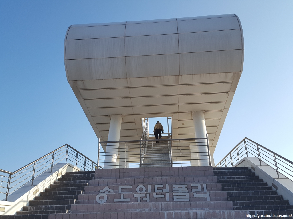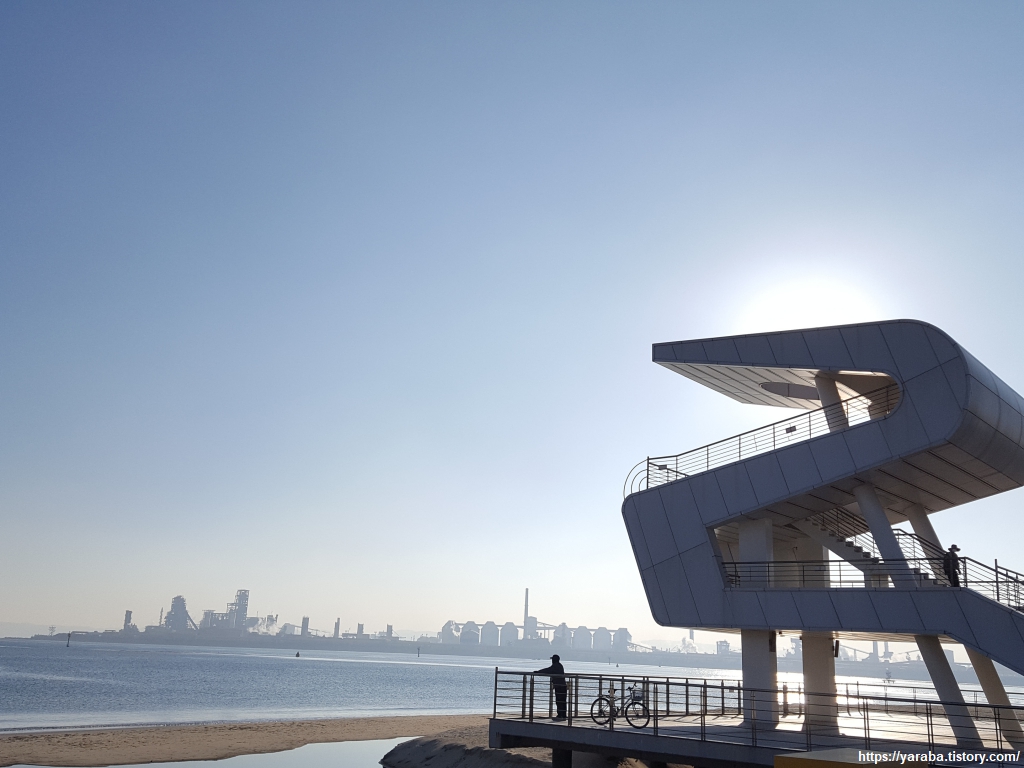 워터 폴리라는 이름의 구조물은 형산강, 송도 해수욕장, 영일대 해수욕장 등 유독 포항에 많이 설치되고 있다. 대체 뭐하는 곳일까? 하는 호기심이 있었는데, 워터 폴리(Water Folly)라는 이름 그대로 강이나 바다 인근에 설치한 장식물이나 구조물을 의미한다. 폴리(Folly)라는 단어가 어리석다는 의미도 있지만 건축에서는 정원을 장식하는 구조물을 의미한다고 한다. 포항시에서는 시의 상징새인 갈매기를 형상화한 구조물을 설치하면서 동시에 시민들에게 좋은 전망대도 제공하는 의도였지 않을까 생각한다.