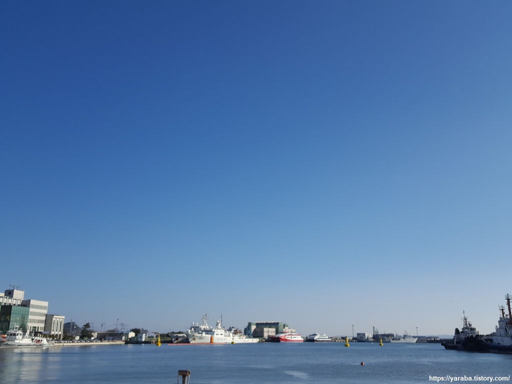 멀리 포항 여객선 터미널이 눈에 들어온다. 울릉도로 가는 배들이 정박해 있다. 운항 통제하지 않는 날을 잘 골라야 한다 오늘도 운항 통제로 배가 뜨지 못하는 모양이다. 포항 지방 해양 수산청 건물을 돌아가면 바로 포항 여객선 터미널을 만날 수 있다.