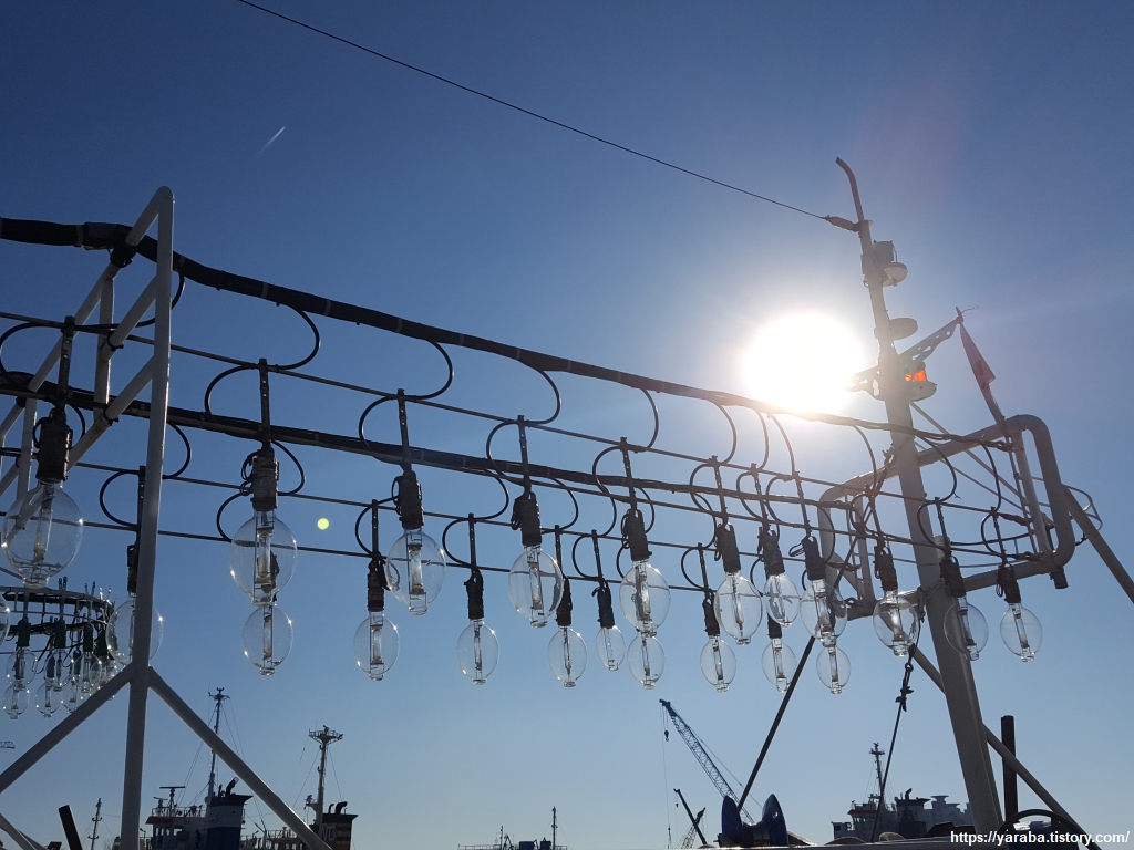 길은 동빈 내항에 정박한 어선들을 보면서 걷게 되는데, 어선에 매달린 집어등을 비추고 있는 아침 햇살의 모습이 아름답다.