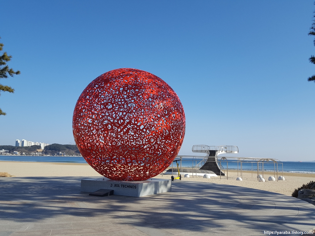 여객선 터미널이 있는 곳은 영일대 해수욕장이 시작되기도 하는 곳으로 그 입구부터 예술 작품이 세워져 있다. "2016 타임캡슐 포항"이라는 작품. 작품명에서 유추할 수 있는 것처럼 2016년 당시의 사람 이름, 역사적인 사건, 포항시 슬로건, 지명, 건물명 등을 레이저 절단 방식으로 쇠를 잘라서 만든 것이라 한다. 보통 타임캡슐이라 하면 땅에 깊숙하게 묻지만 이 작품은 보이는 타임캡슐인 셈이다. 해변에 고래 꼬리 모양의 전망대는 송도에 갈매기 형상으로 세운 것과 같은 워터 폴리이다.