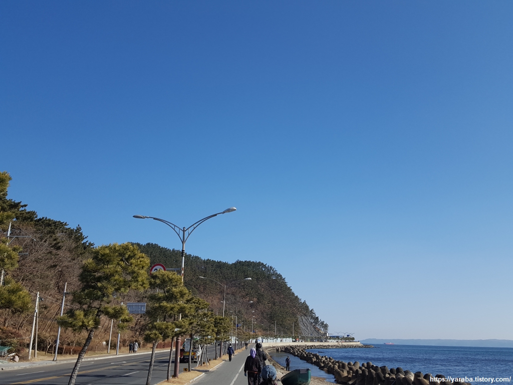 환호 공원 앞쪽 길을 지나니 멀리 여남 방파제가 눈에 들어온다.
