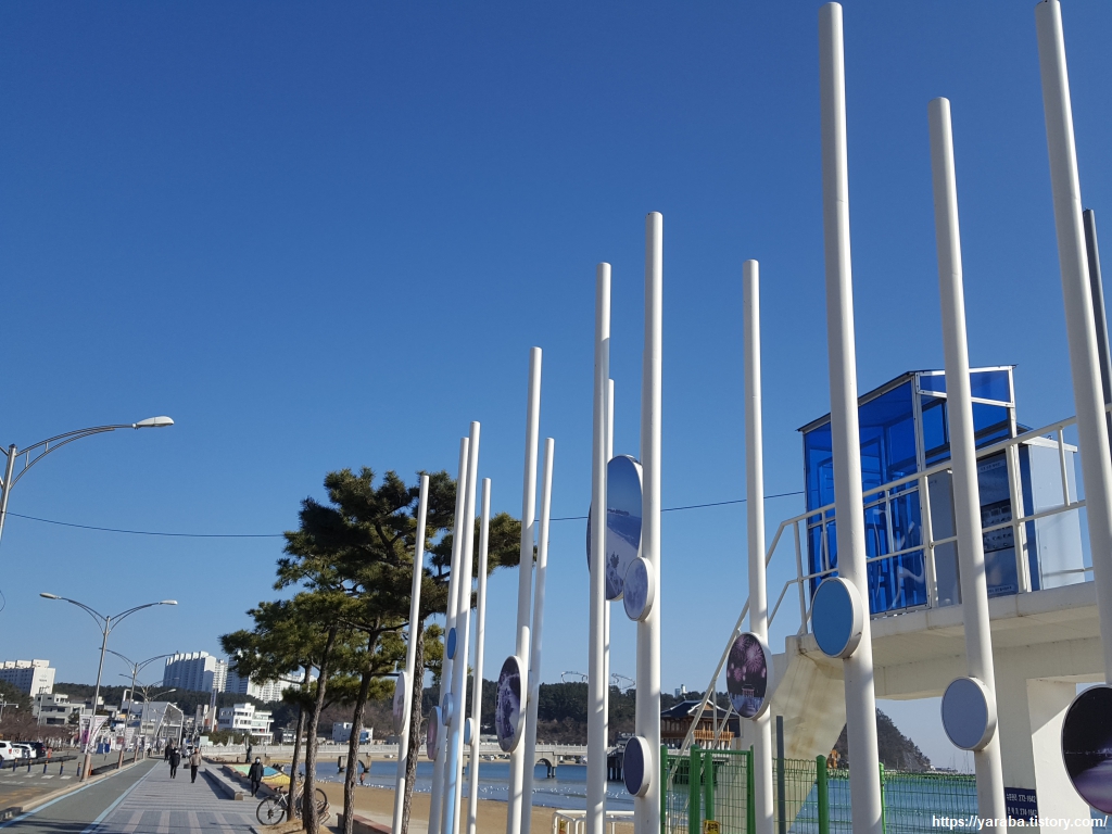 영일대 해수욕장에 도착한 해파랑길 17코스는 환호 공원을 지나서 여남 방파제로 길을 이어간다.