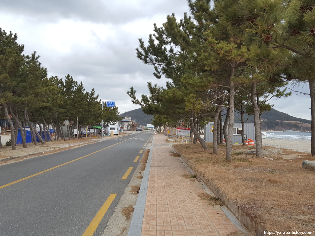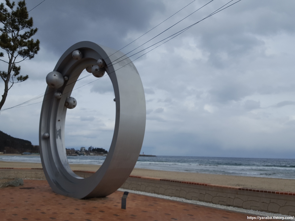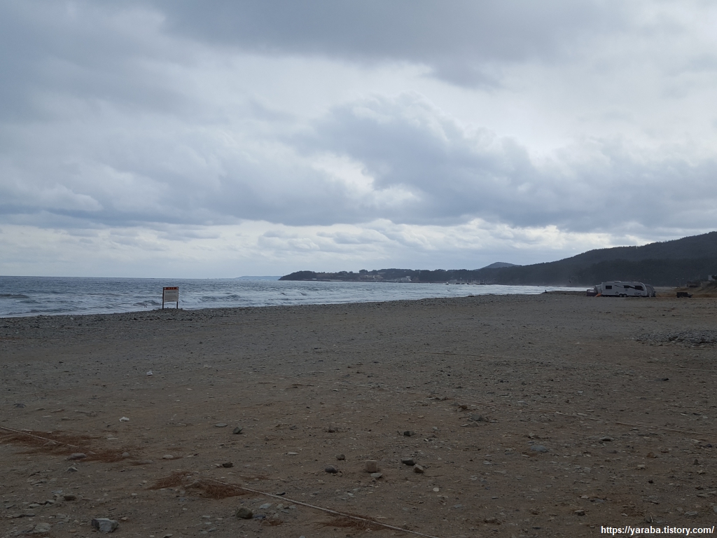 월포 해수욕장에 도착했다. 포항에서 가장 큰 규모의 해수욕장이라는 월포 해수욕장은 아주 가까운 위치에 월포역이 있어서 포항역에서 기차를 타고 한 정거장이면 올 수 있다. 접근성이나 편의시설, 숙박시설 등 여러모로 매력적인 곳이다. 해변은 차가운 겨울 날씨에 구름까지 많은 날이라 한적하다.