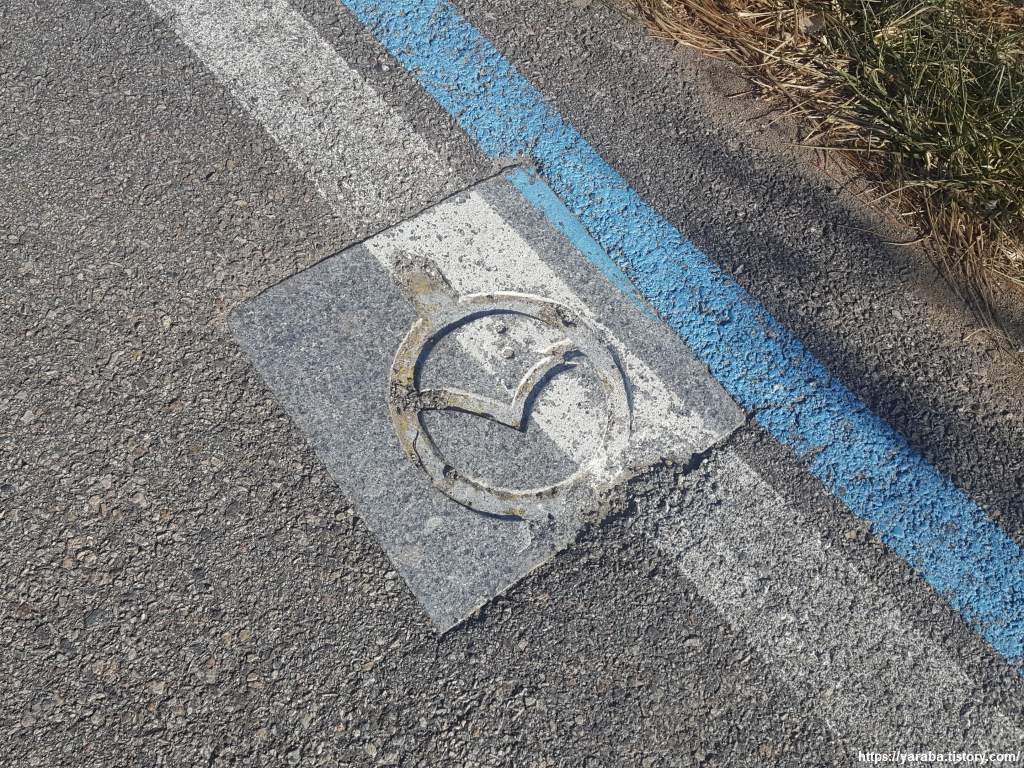 국도변 자전거 보행자 전용길에 새겨진 영덕 블루로드 노면 안내 표시. 블루로드에서 이따금씩 볼 수 있는 표식이다.