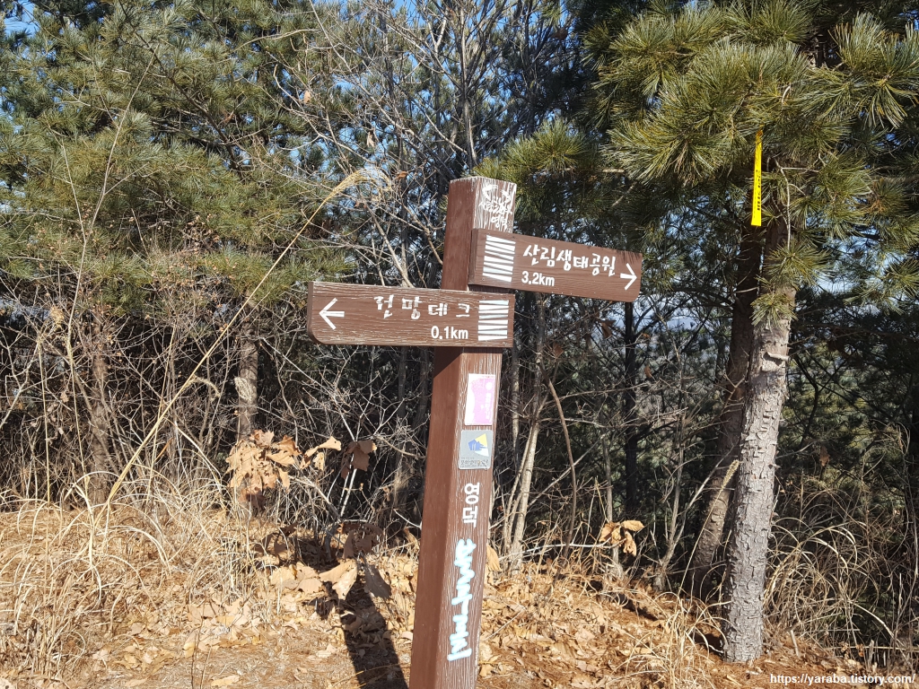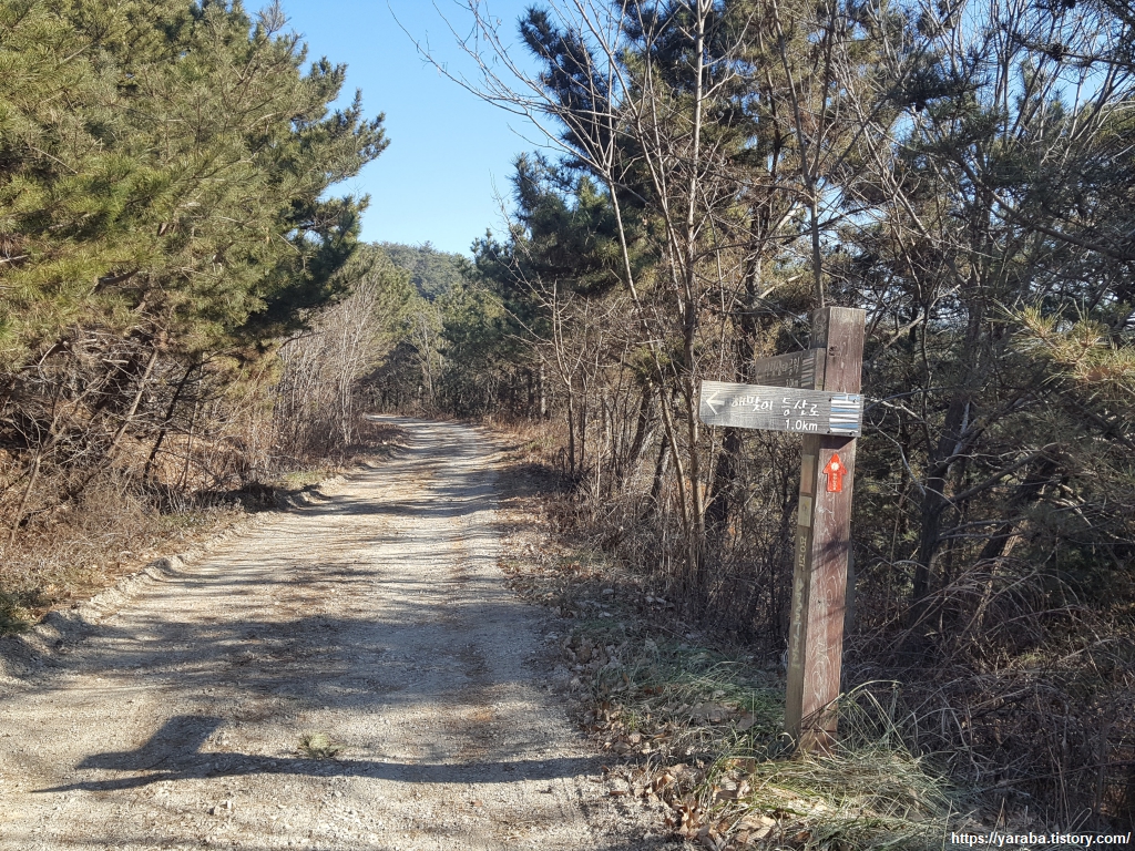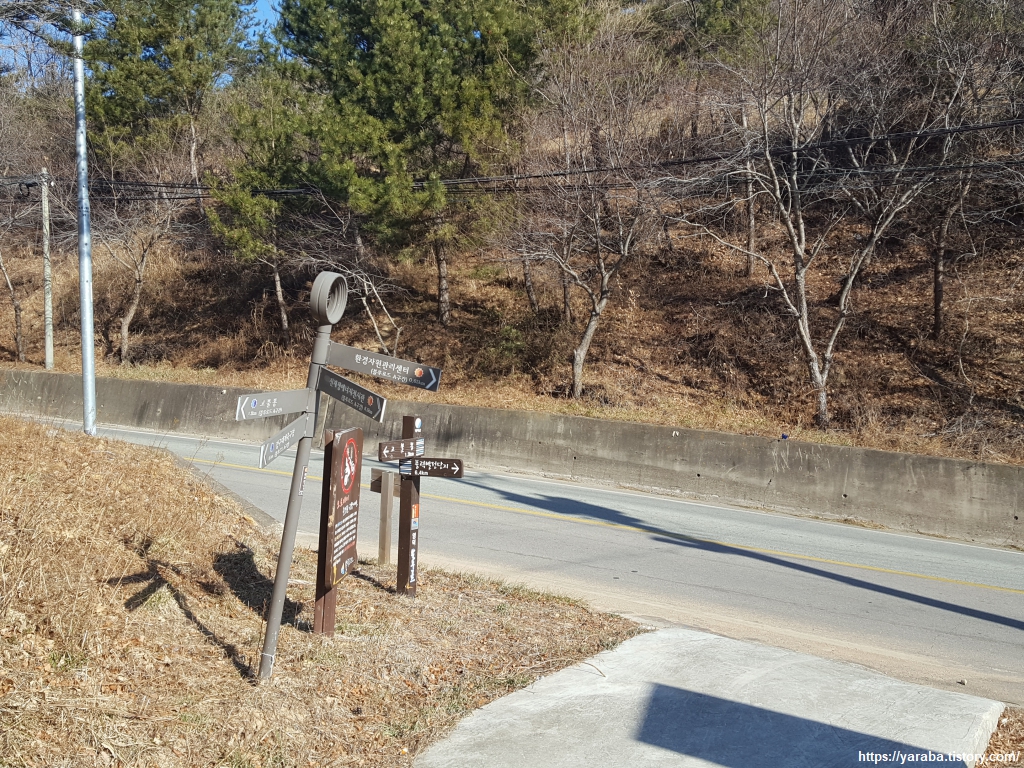 데크 전망대를 떠나 조금 더 걸어 오르다 보면 자원 순환 센터에서 올라오는 임도와 만난다. 산림 생태 공원 방향으로 좌회전한다.
