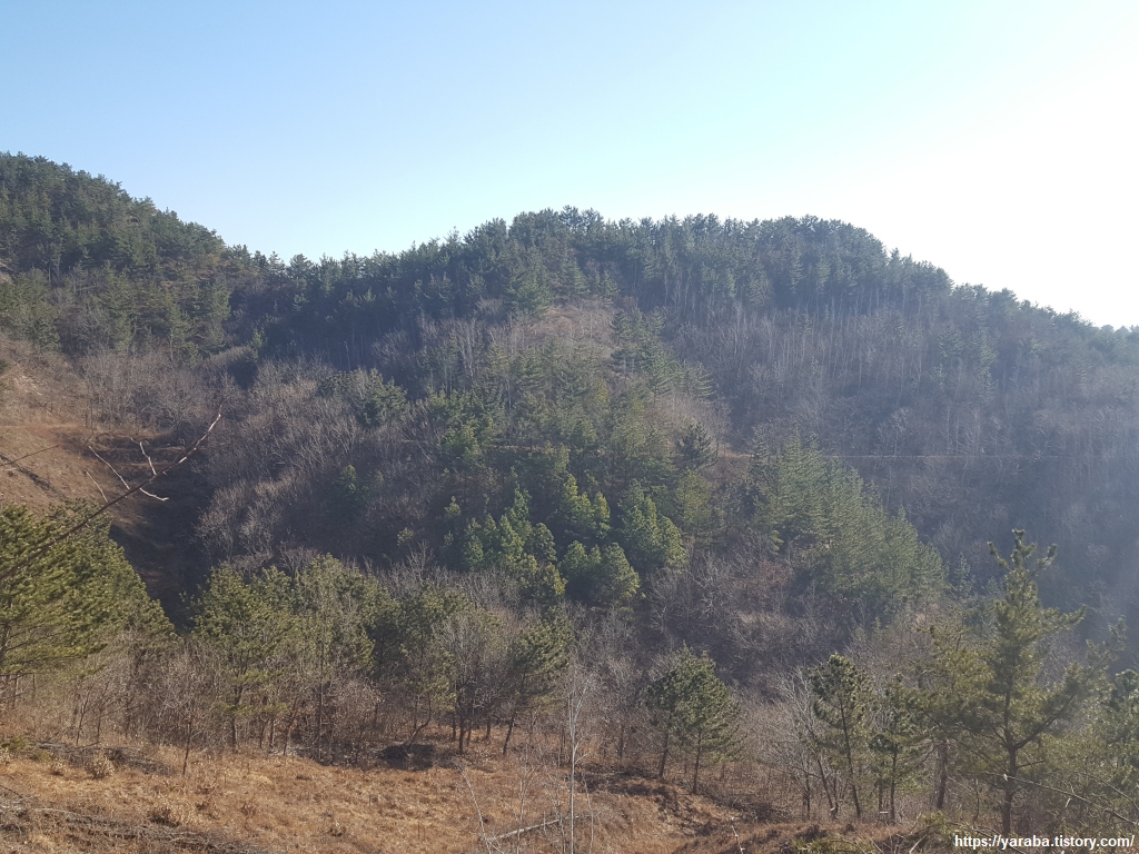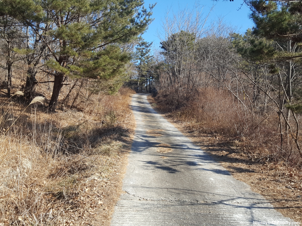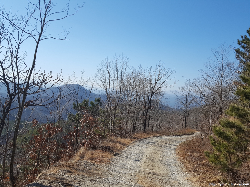 자원 순환 센터에서 영덕 산림 생태 공원 입구까지 절반 정도를 걸었다. 이 굽이를 돌아서면 도착할 것 같고, 저 굽이를 돌아서면 끝일 것 같은 임도는 걸어도 걸어도 끝이 보이지 않는다.