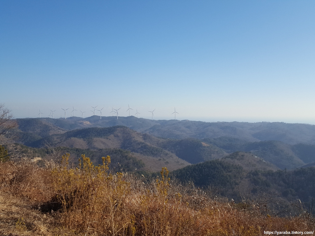 영덕 해맞이 공원 방면의 전경이다. 아득하게 멀리 보이는 풍력 발전 단지를 지나서 바닷가까지 걸어갈 것을 생각하면 아찔하다. 때로는 먼 목표는 보이지 않는 것이 도움이 된다는 생각이 든다.
