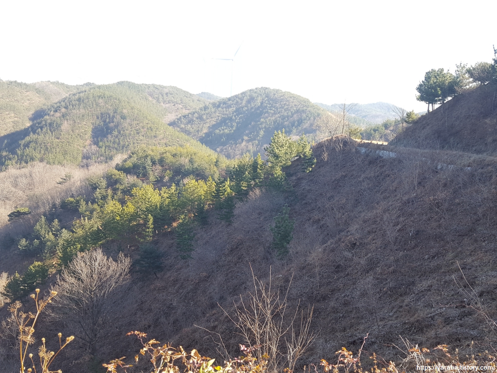 산허리를 돌아가는 임도를 따라서 길을 이어간다. 평탄한 임도를 걷는 것이 조금은 지루할 수 있지만 걷기에 부담 없으니 사색하기 좋은 길이다. 2005년에 상업 운전을 시작한 이곳은 총 24기의 발전기가 운영되면서 영덕군이 1년 동안 사용할 수 있는 전기를 생산하고 있다고 한다. 산이 높지 않아도 바람이 좋아서 이곳의 풍력 발전기들은 생생하게 잘 돈다.