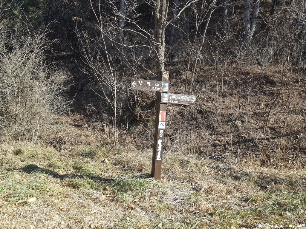 임도가 끝나면 산림 생태 공원과도 이별이고 이제는 도로변 길을 걷는다.