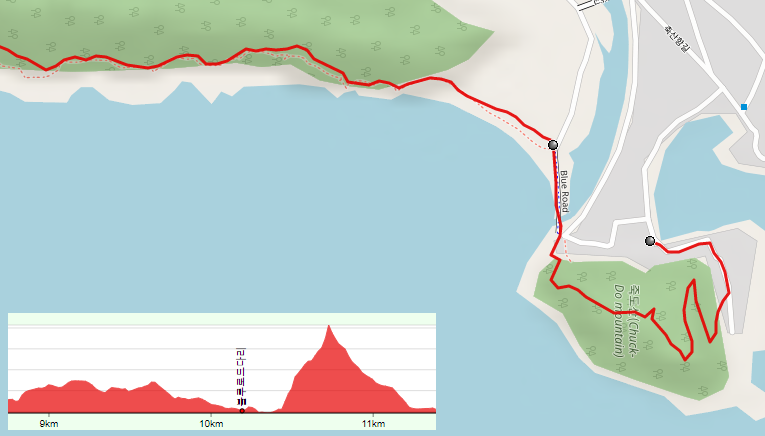 말미산 숲길을 지나면 죽도산을 거쳐서 축산항에 도착한다. 높지 않은 죽도산을 오르면 주변의 탁 트인 경관을 보고 축산항으로 내려올 수 있다.