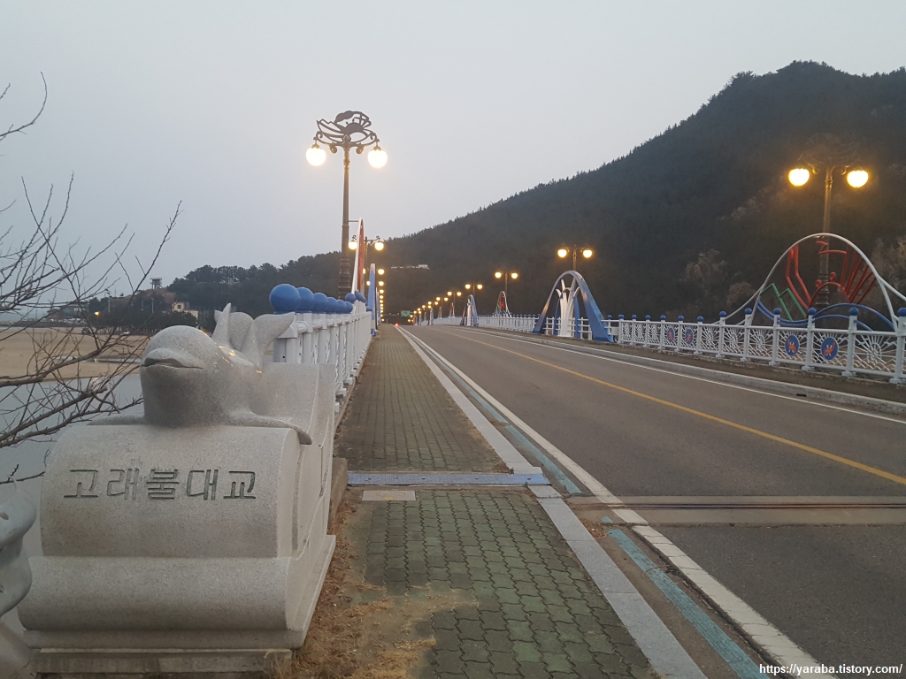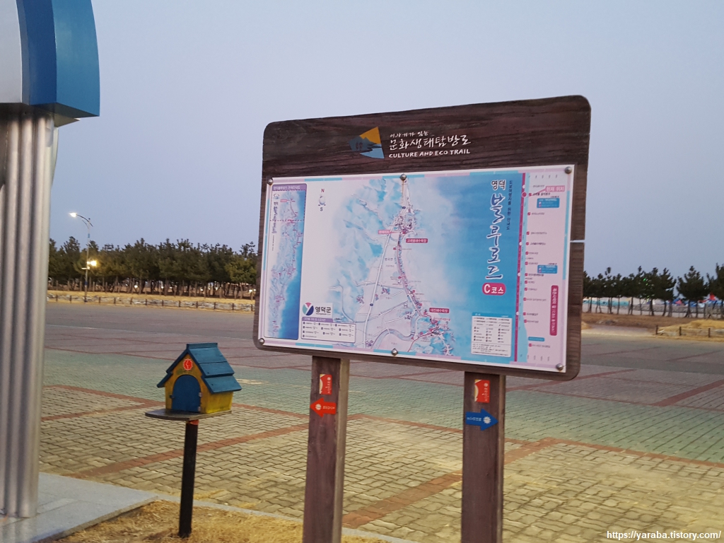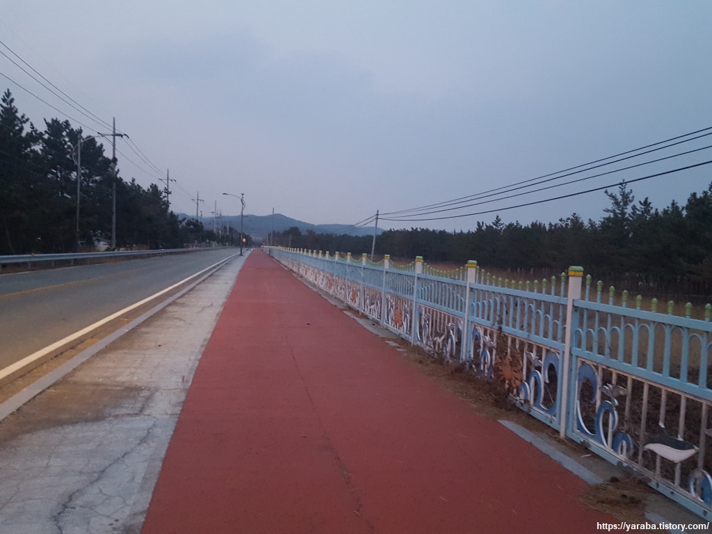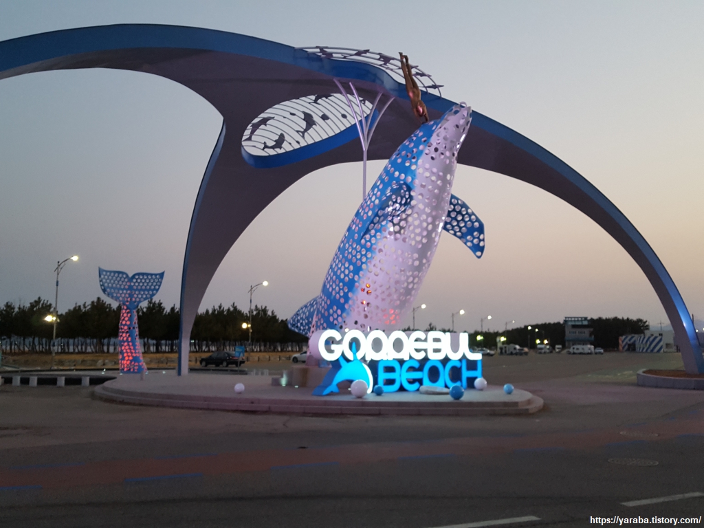 조금은 지루한 도로변 걷기를 하다 보면 경북 수산 자원 연구원, 영덕군 청소년 야영장을 지나서 고래불 해수욕장에 도착한다. 도로의 이름도 고래불로이다.