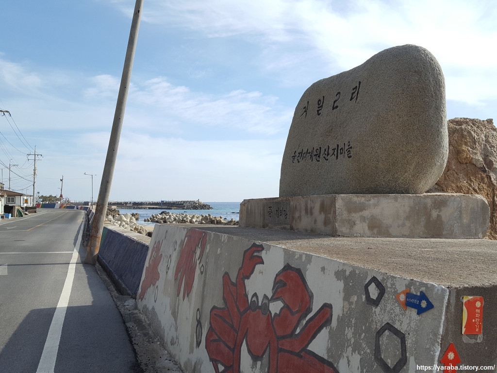 울진 대게 원산지 마을이라는 거일 2리에 도착했다. 영덕과 울진은 서로 대게의 원산이라고 투닥이지만, 역사책, 대게의 맛, 모양 누가 심판이 될지...... 원산을 따지기보다 건강한 바다 환경으로 지속 가능한 대게 산업이 되었으면 하는 생각이다. 영덕 강구항에 몰려있는 수많은 대게 식당을 보면 영덕의 대게 수확량이 제일 많을 것 같지만 포항과 울진의 대게가 영덕 강구항으로 가는 것이다.
