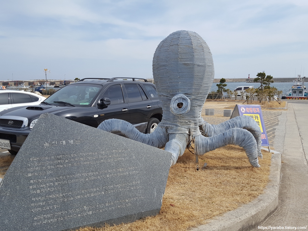 구산항에서 잡히는 주요 어종은 오징어, 문어, 대게, 가자미라고 한다. 그중에 문어를 형상화한 조형물이 발길을 멈추게 한다. 낚싯배를 타고 나가서 낚시를 하면 보통 돔이나 우럭 같은 어종을 낚시하는 줄 알았는데 낚시꾼들이 문어도 낚시로 잡는다고 한다.