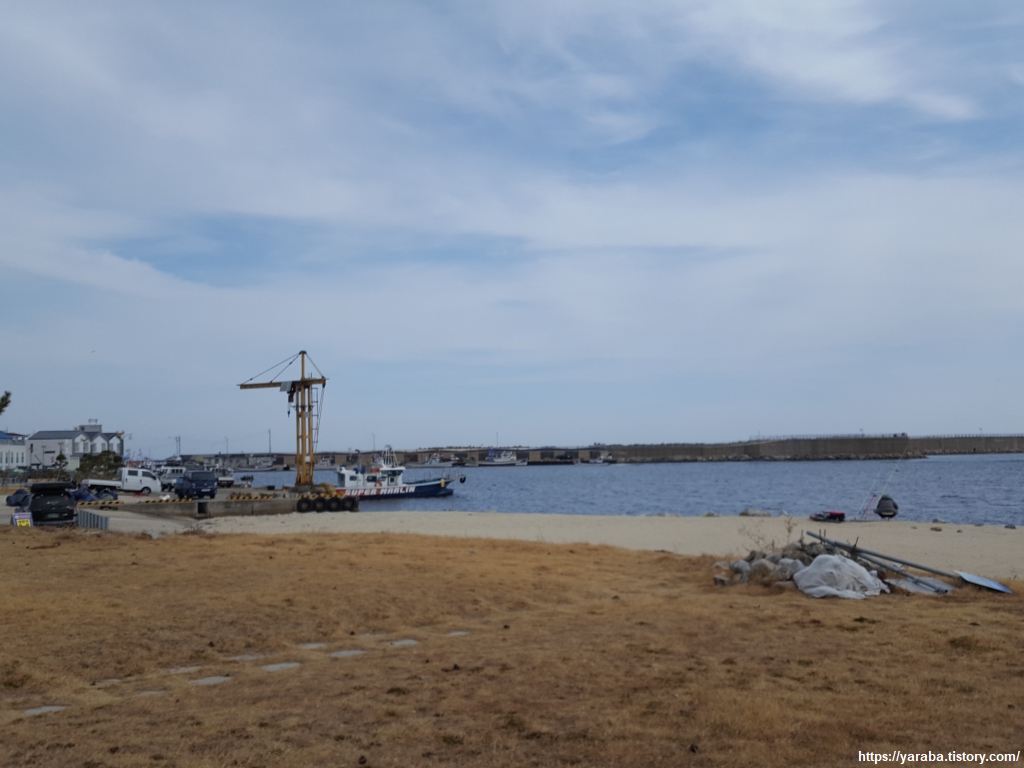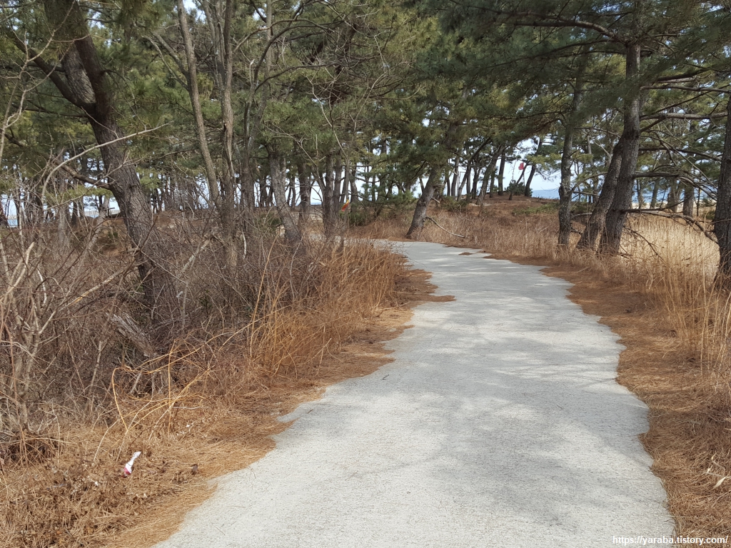 황보천을 건너서 오솔길을 지나면 구산 해변을 만난다. 멀리 구산항도 눈에 들어온다.