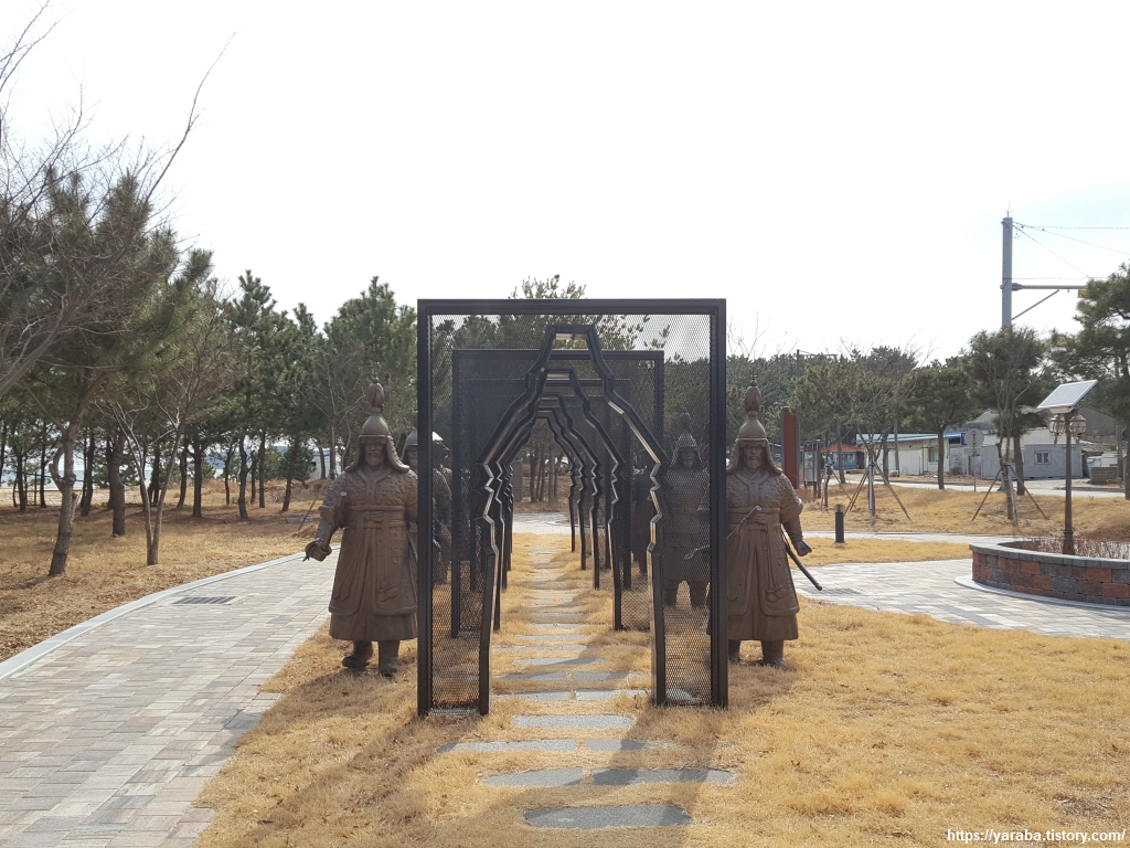 수토사 행렬을 재현한 수토사 터널 조형물. 모두 표정이 근엄하다.