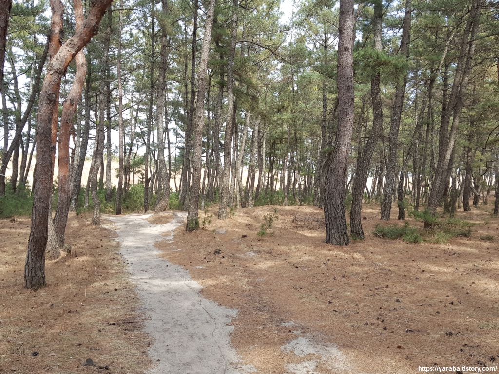 해파랑길은 구산 해수욕장 뒤편의 솔숲으로 길을 이어간다. 오토 캠핑장이 자리하고 있었다.