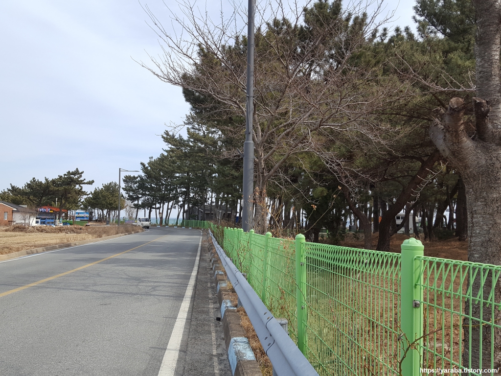 해수욕장 입구를 나서면 구산항을 향해서 구산마을길을 걷는다. 해수욕장 캠핑장 옆을 돌아서 간다.