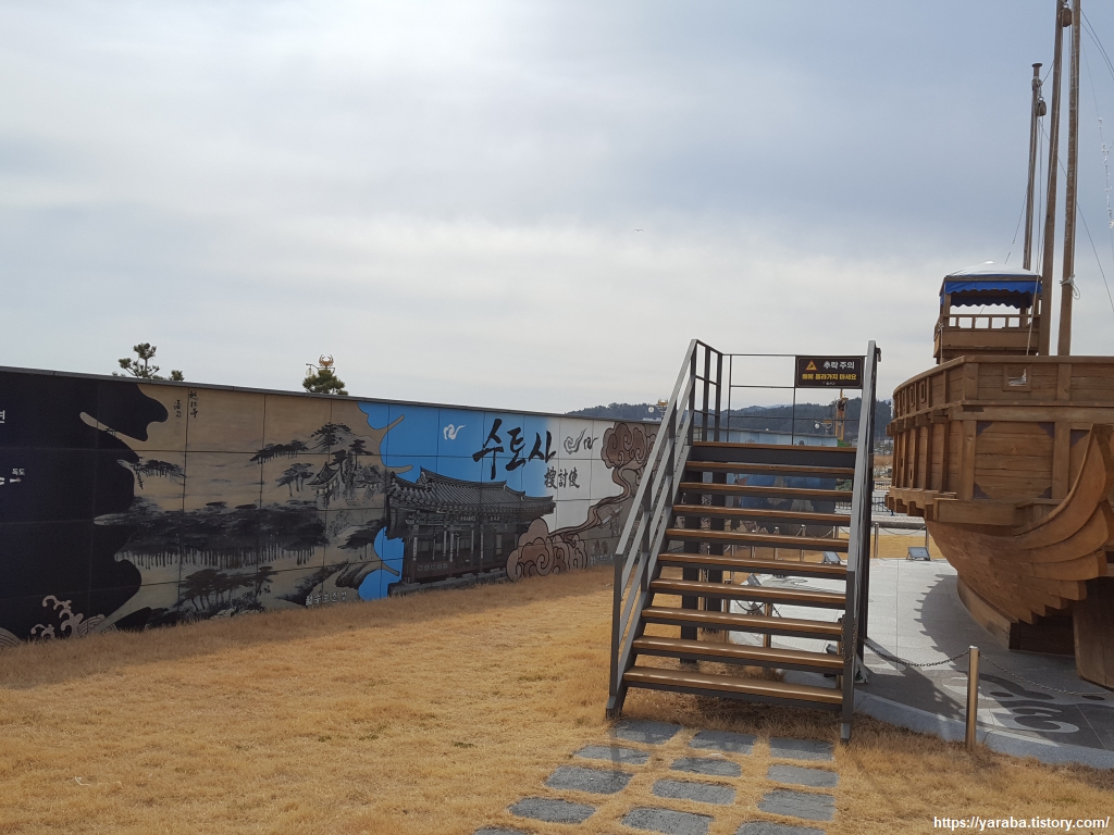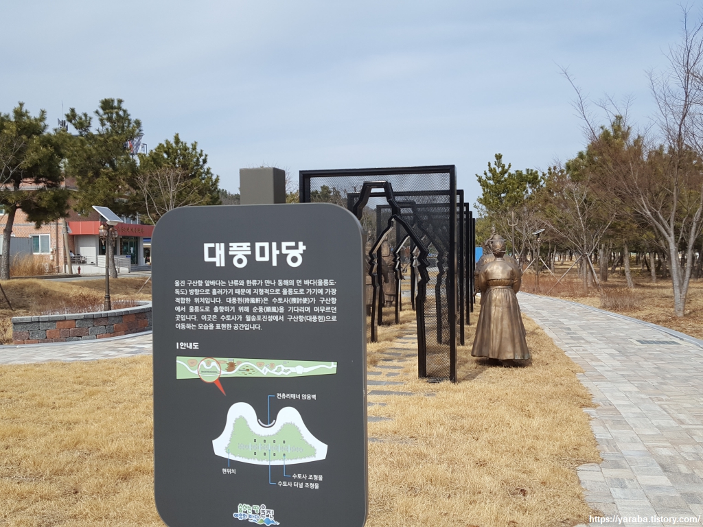 항구 한쪽에는 독도 모형도 마련되어 있고, 수토사가 타고 바다를 건너갔을 배 모형도 만들어져 있었다. 수토사의 시대 배경과 독도, 이곳의 자연환경을 생각할 수 있는 좋은 시간이었다.