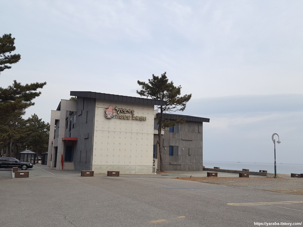 숙소에서 해변을 따라 걷다 보면 얼마 가지 않아 기성 망양 해수욕장을 만난다. 해빛뜰 마을이라는 이름으로 마을이 경영하는 공간도 있었다. 교류 센터라는 곳은 평상시에는 펜션으로 활용하는 공간이다.