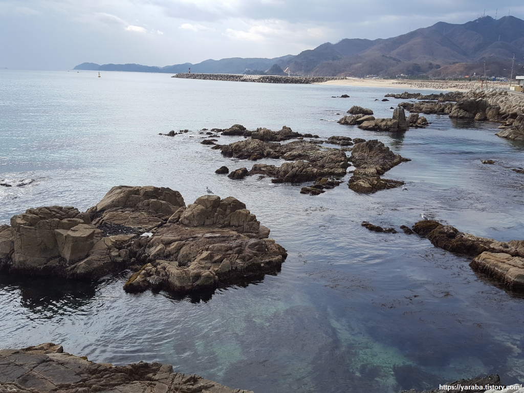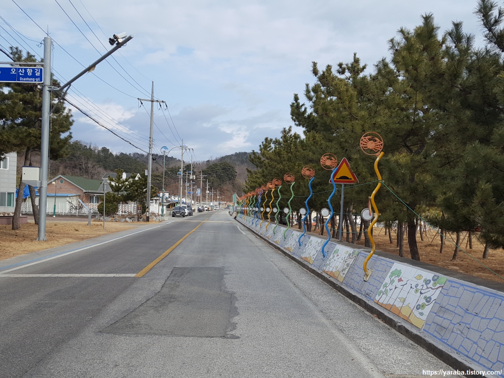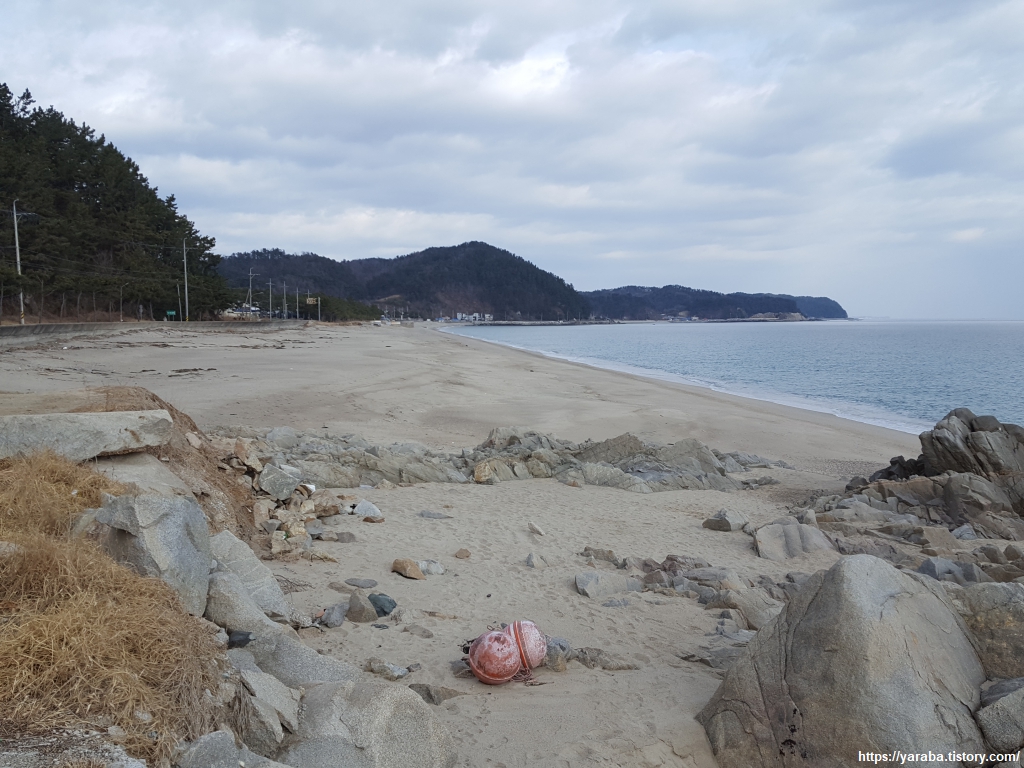 양식장과 수산 과학원 때문일까? 오산 3리 해변은 긴 모래사장에도 불구하고 해수욕장이 없는 모양이다.
