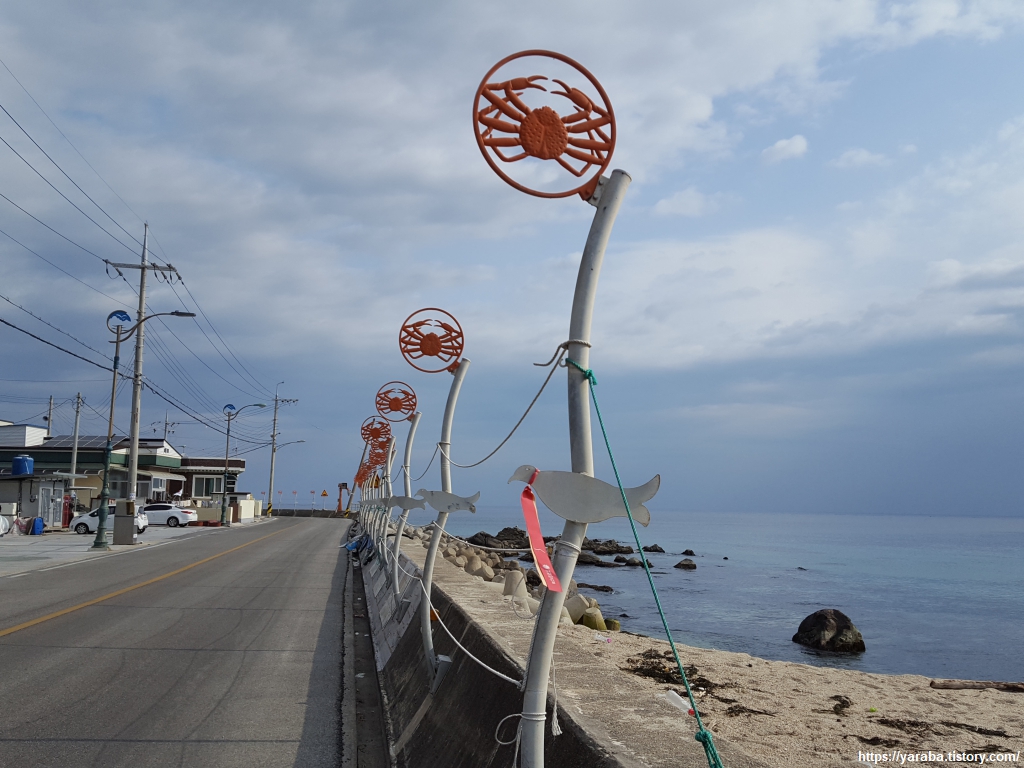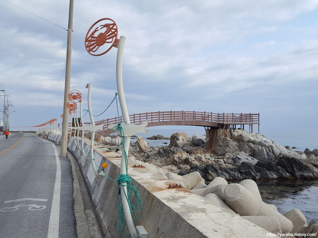 덕신리와 오산리를 이어주는 오덕교를 넘어가면 예쁜 대게 모양의 건조대 기둥이 반갑게 인사하는 오산리로 들어간다.