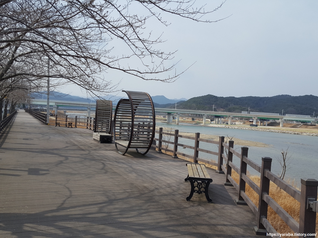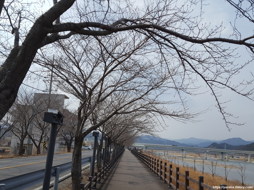 왕피천변 산책길은 벚꽃길이다. 봄이 아니고 꽃도 잎도 없어도 이쁜데 조명 시설까지 마련되어 있으니 봄이면 환상적인 풍경을 선사할듯하다.