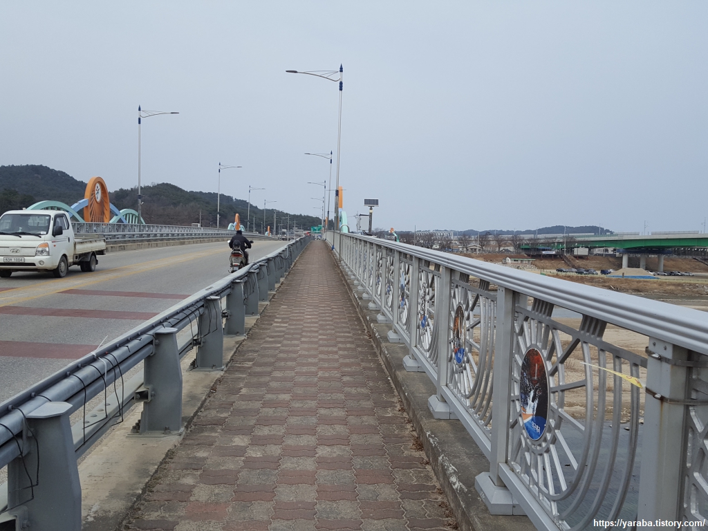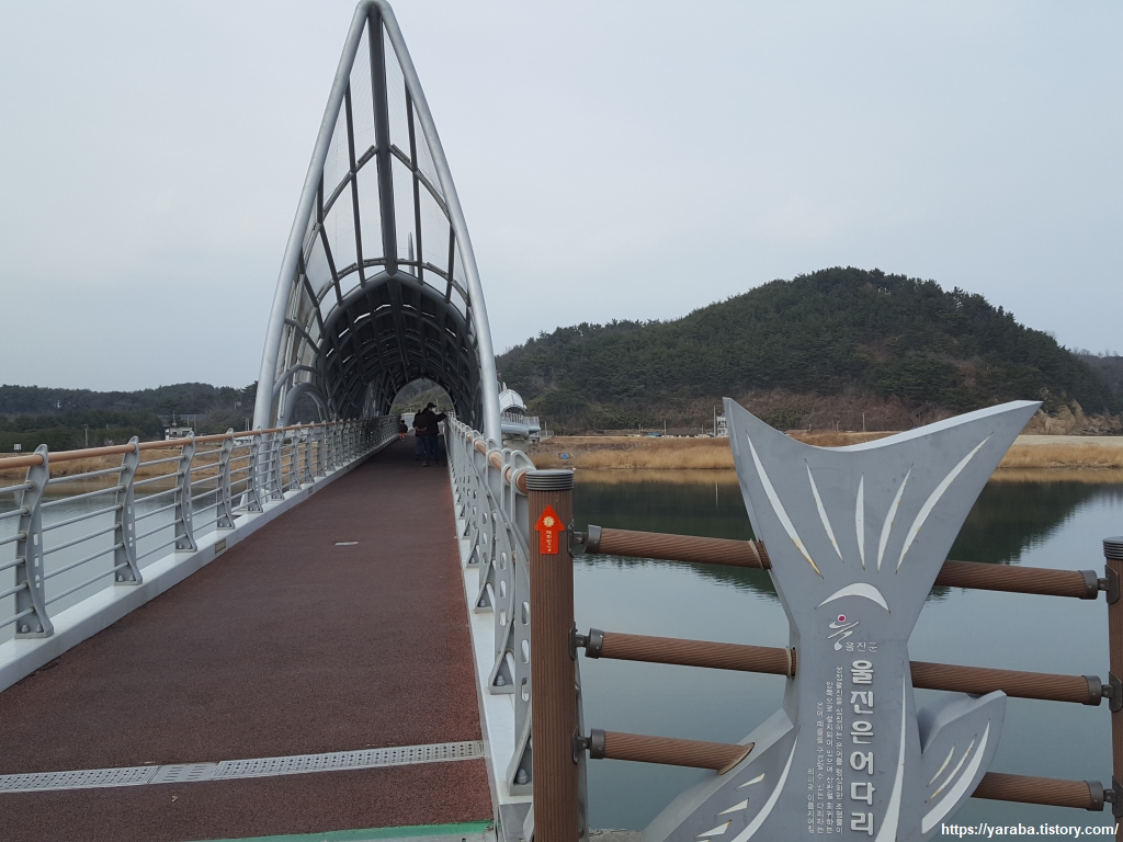 해파랑길 26코스는 은어 다리가 생긴 이후로 코스도 변경되었는데 예전에는 읍남리 마을 길을 거쳐서 울진군 의료원 앞을 지나 연호로 갔었다. 지금은 은어 다리를 건너서 남대천변을 따라 읍내를 관통하여 연호로 가도록 바뀌었다. 그런데 은어 다리를 볼수록 수박향 나는 은어가 아니라 로봇 용이 상상되는 것은 왜일까? ㅎㅎ