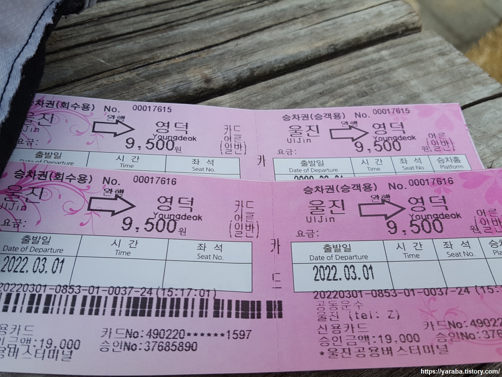 울진에서 영덕으로 가는 버스는 자주 있는 편이다. 다만, 의외로 버스 값은 상당히 비싸다. 와우! 9,500원 이라니.