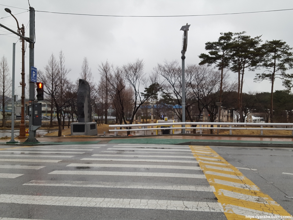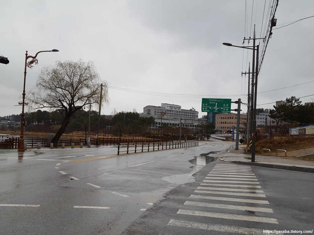 부구 1리 버스 정류장에서 6시 30분 버스를 타니 오전 7시에 울진군청에 도착할 수 있었다. 버스를 내리니 비가 추적추적 내리기 시작한다. 작은 우산을 챙기기는 했지만 약하게 내리는 비를 맞으며 걷기에는 우비가 낫지 않을까 싶어 편의점에서 우비를 하나 구해 입었다. 눈이 섞여서 내리는 서늘한 날씨에 얇은 우비가 조금은 보온 역할을 해주기도 했다.