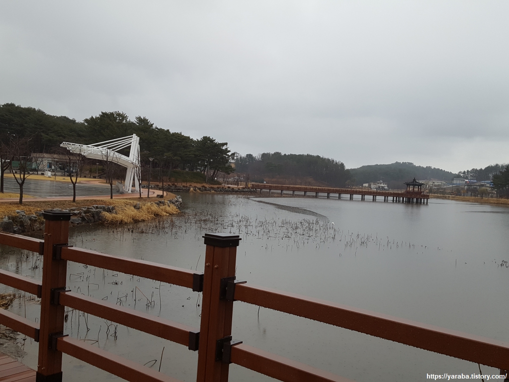 팔각 정자는 "달에 비친 연꽃"이란 뜻으로 월연정이라 지었고, 정자로 가는 다리는 "물고기의 즐거움"이란 뜻으로 어락교라 지었다고 한다. 아이의 이름을 아버지가 주듯이 이런 시설의 이름은 군수가 지어준 모양이다. 무언가에게 존재의 의미를 부여한다는 시각에서 이름을 지어주는 행위를 다시 한번 돌아보게 된다.
