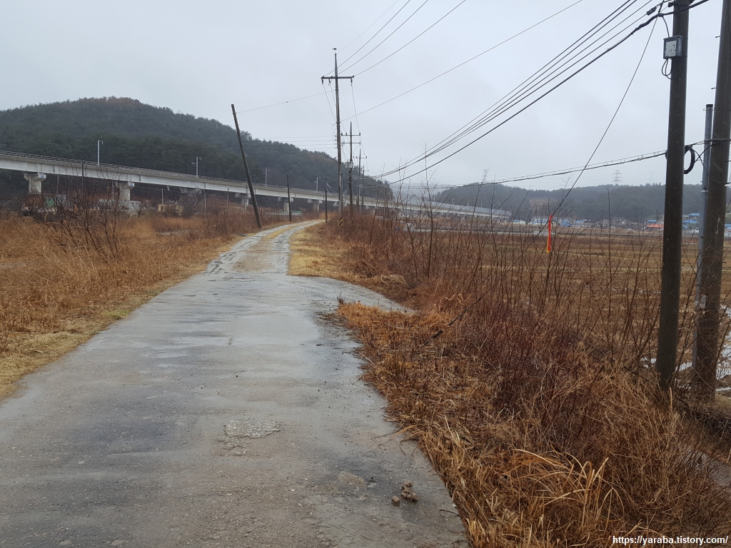 고목리를 빠져나오면 울진북로 도로변을 이어서 걷는다. 건설 중인 동해선 철로 아래를 지난다.