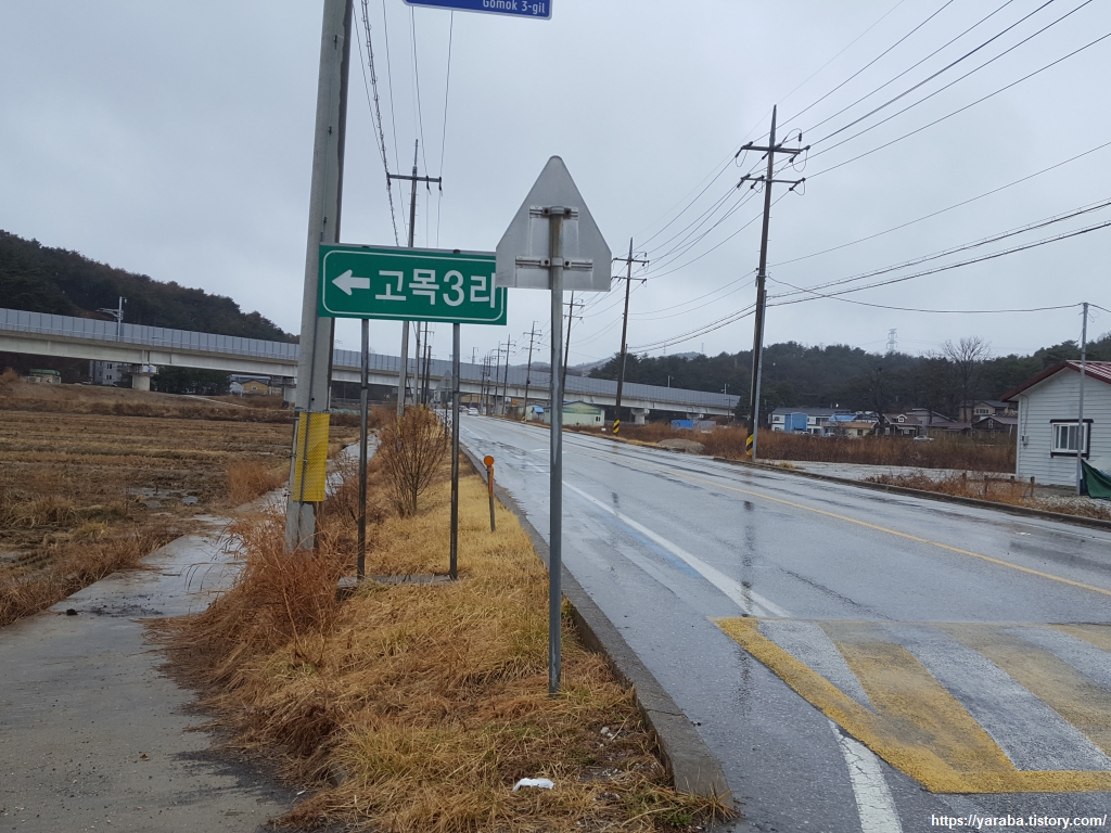 고목리 하천변 길을 걷다가 우회전하여 울진북로를 향한다.