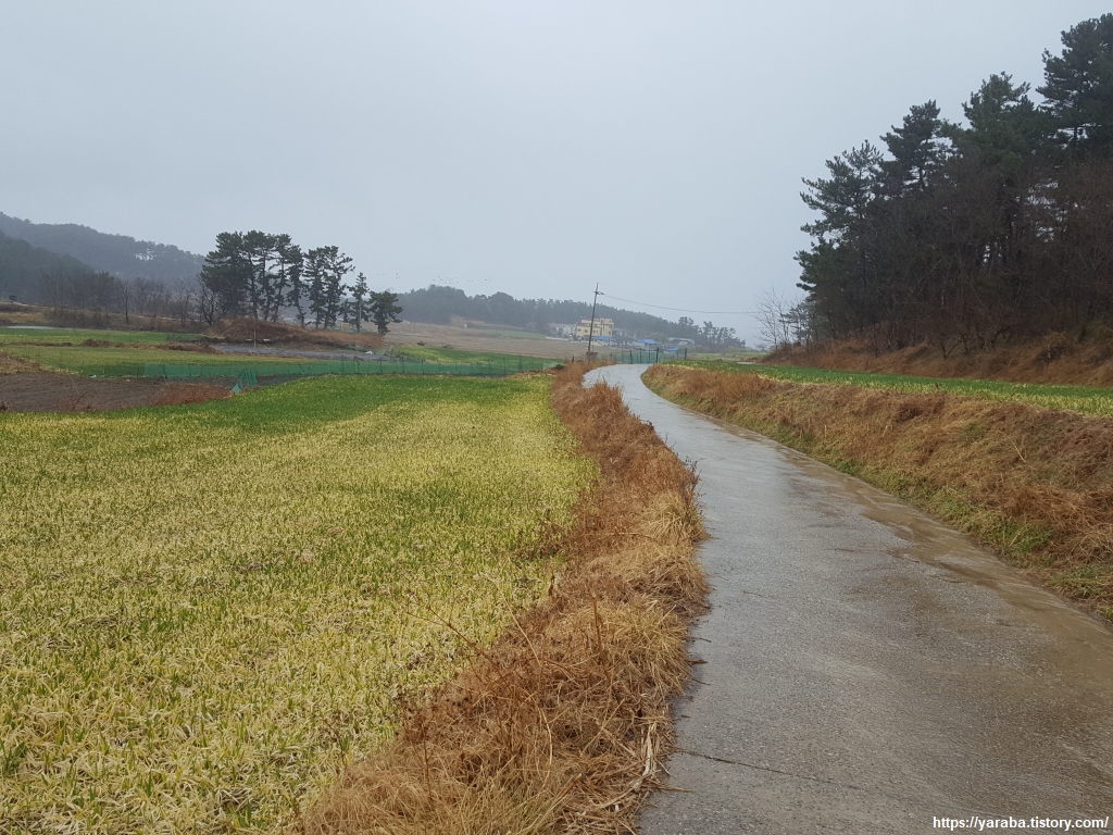 죽변리 읍내를 떠나면 길은 숲길과 들길을 이어서 간다. 빗속에서 숲길을 걷는 독특한 맛이 있다.