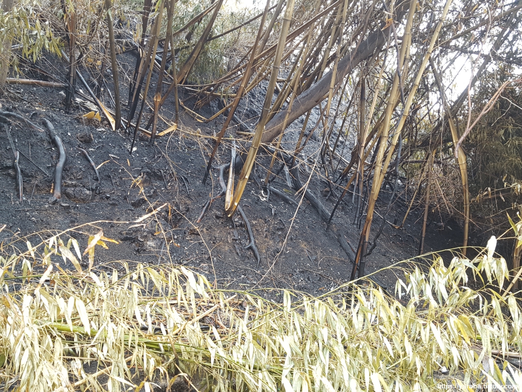 울진 산불의 흔적이 낭자한 도로변을 걷자니 그저 탄식뿐이다. 화마가 할퀴고 지나간 자리는 어떤 동물들이 보금자리로 살았을 작은 구덩이들 마저도 고스란히 노출시키고 있었다.