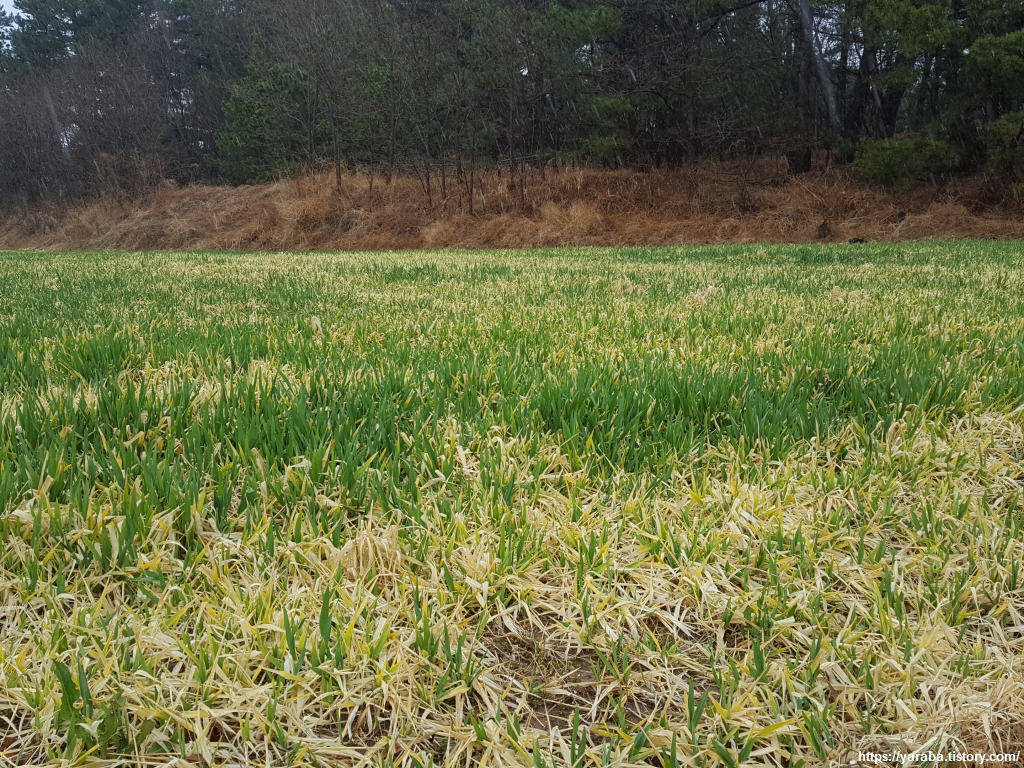 숲길을 지나니 우리를 맞아주는 것은 넓은 들판과 푸릇푸릇한 보리밭이다.