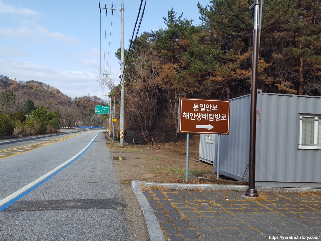 나곡 3리에서 나곡 4리로 길을 이어가는 도중 만난 통일 안보 해안 생태 탐방로 입구. 탐방로의 숲과 나무는 이번 울진 산불에 무사하지 못했지만 데크길과 화장실은 무사했다. 쉼터에서 잠시 간식도 먹고 화장실도 다녀올 수 있어서 얼마나 감사했는지...... 도로변을 걸으며 공중 화장실을 만나지 못하는 상황에서 몸이 급한 상태가 되면 정말 고통스러운데 깨끗한 화장실에 쉼터까지 정말 고마운 공간이었다.