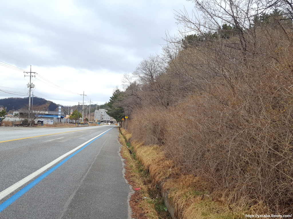울진북로를 따라서 도로변을 따라 길을 이어간다. 나곡 3리, 나곡 4리도 지나가야 한다.