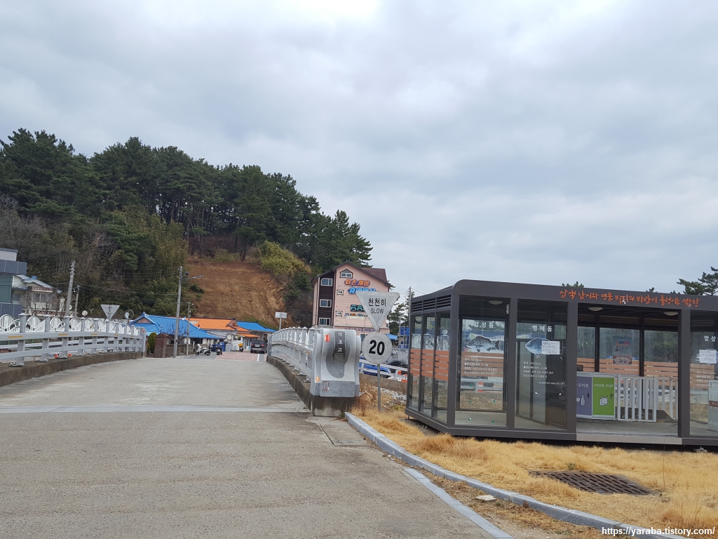 이쁜 그림이 새겨진 석호항 등대를 뒤로하고 석호교에서 좌회전하여 길을 이어간다.