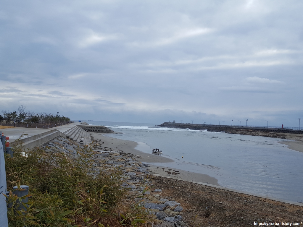 나곡 해수욕장의 모래 해변은 볼 수 없지만 나곡천을 건너는 나곡교를 지나며 나곡 3리의 조용한 해변을 상상해 본다.