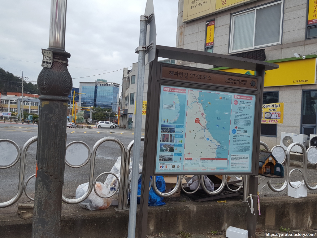 부구 삼거리에 있는 스탬프함에서 도장을 찍고 해파랑길 28코스를 시작한다. 부구천변길을 따라 길을 시작한다.