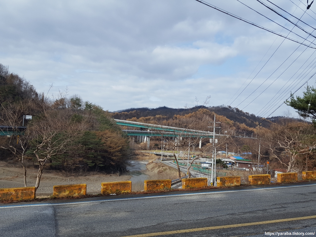 나곡 교차로에서는 7번 국도와 연결되는 부분이기도 하지만 나곡 4리가 있는 태봉산 자락의 태봉 마을로 들어가는 길이다. 태봉이란 이름은 태반을 묻은 태실이 있었다 하여 불린 이름이라고 한다. 전국에 태봉이란 이름을 가진 마을이 많다. 도로변을 걷지만 그림처럼 저전거나 사람이 걸어갈 수 있는 공간이 넉넉해서 위험하지는 않았다.