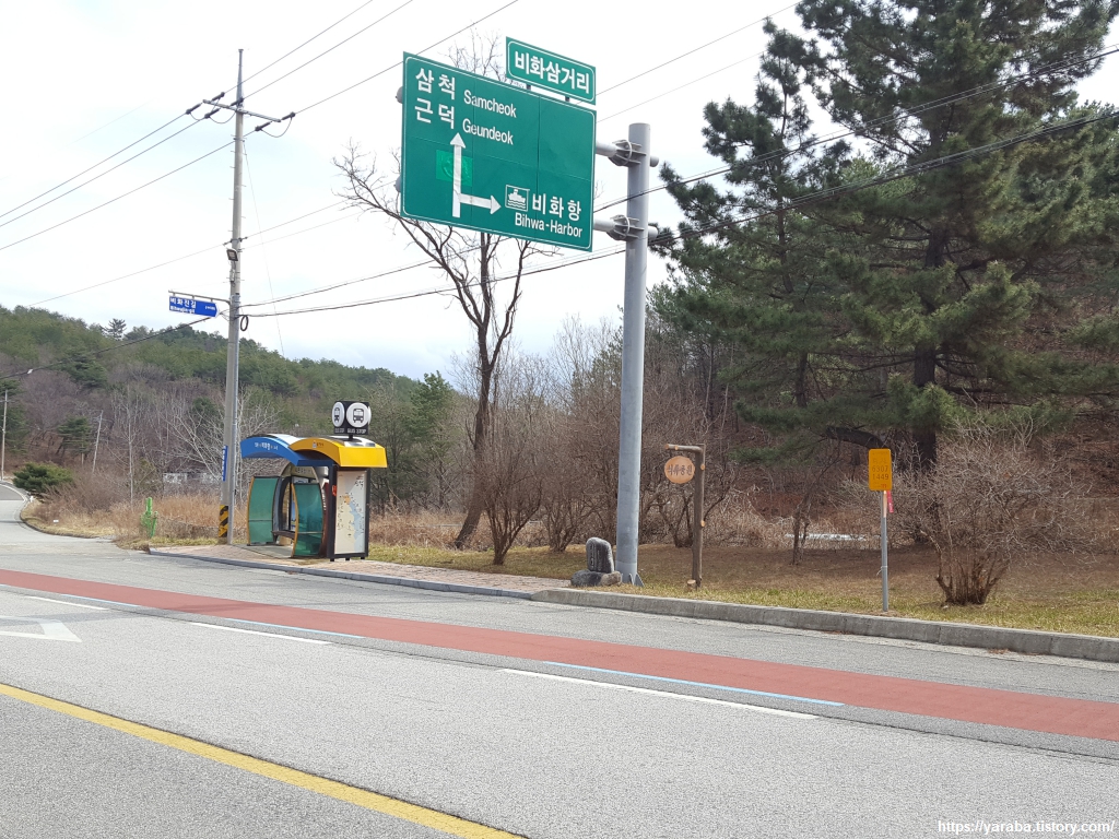해파랑길이 걷는 삼척로는 해안과 함께 나란히 길을 가지만 해안에서 조금은 거리를 두고 길을 이어간다. 아마도 해안이 가파른 절벽이지 않을까 싶다. 다행인 것은 자전가 도로가 넓게 조성되어 있다. 자전거 마니아들에게는 참 좋은 길이지 않나 싶다.