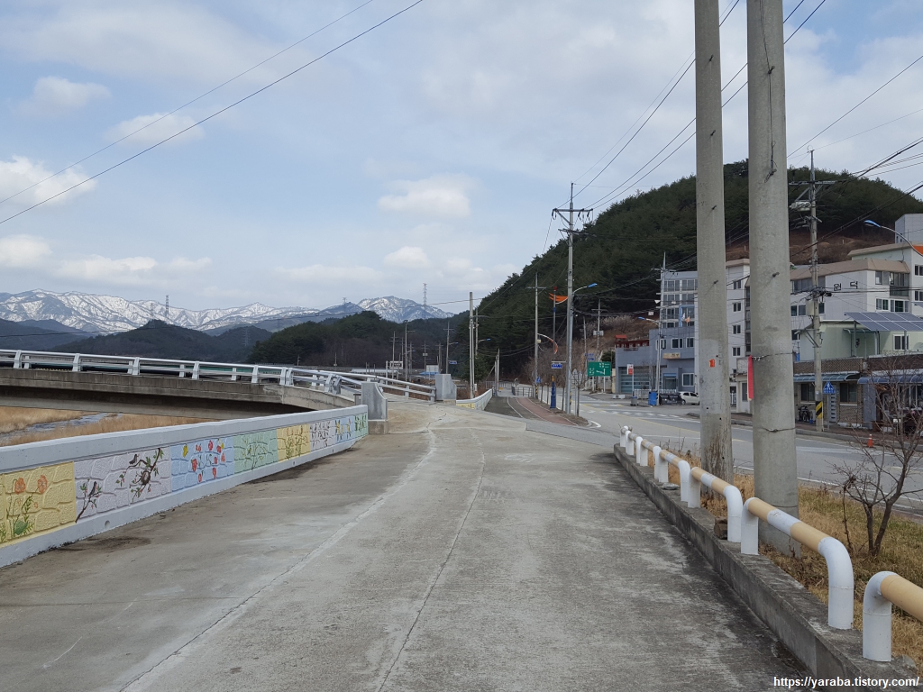 한전 사택을 지나면 한동안 길곡천 옆을 걷다. 수릉교를 통해서 하천을 건너 좌회전하여 길을 이어간다.