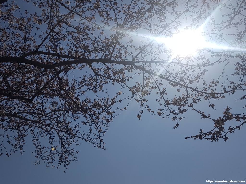 환상적인 벚꽃들 사이로 들어오는 햇살도 아름답다.