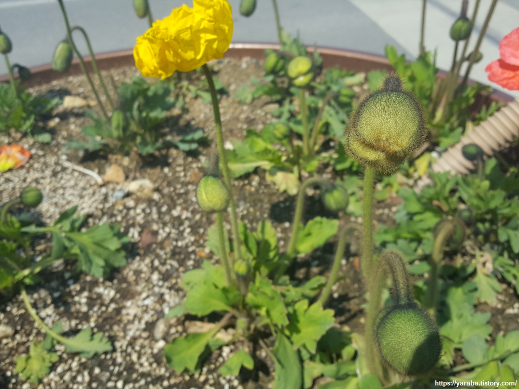 죽서교 앞에서 꽃양귀비가 발걸음을 붙잡는다. 옆지기가 무척이나 좋아하는 꽃이다. 개양귀비, 우미인초라고도 불린다. 중국에서 우미인초라고 부르는 유래에는 초나라 장수 항우의 애첩 우미인에 얽힌 이야기가 있다. 우희라고도 부르는 여인인데 초한전쟁 당시 항우가 한고조의 공격에 사면초가에 이르자 항우에게 짐이 되지 않기 위해 목숨을 끊었다는 전설로 우미인을 묻은 무덤에서 핀 꽃이라 하여 우미인초라 했다는 것이다. 개양귀비라는 별칭에서도 알 수 있듯이 이 꽃으로는 마약을 만들 수 없다. 유럽에서는 줄기는 채소로 꽃잎은 시럽이나 술을 담그는데 쓰고, 씨는 기름을 짜거나 빵에 넣어 먹었다고 하니 마약과는 아무런 관련이 없는 것은 확실하다. 다만, 식물 분류에서는 양귀비과가 맞다.