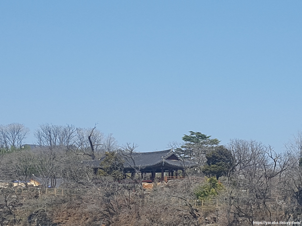 죽서루의 절경은 죽서루에서 내려다보는 풍경도 아니고, 죽서루 건너편에서 죽서루를 보는 것도 아니고 오십천 위 죽서교에서 죽서루를 바라보는 모습이 최고이지 않나 싶다.