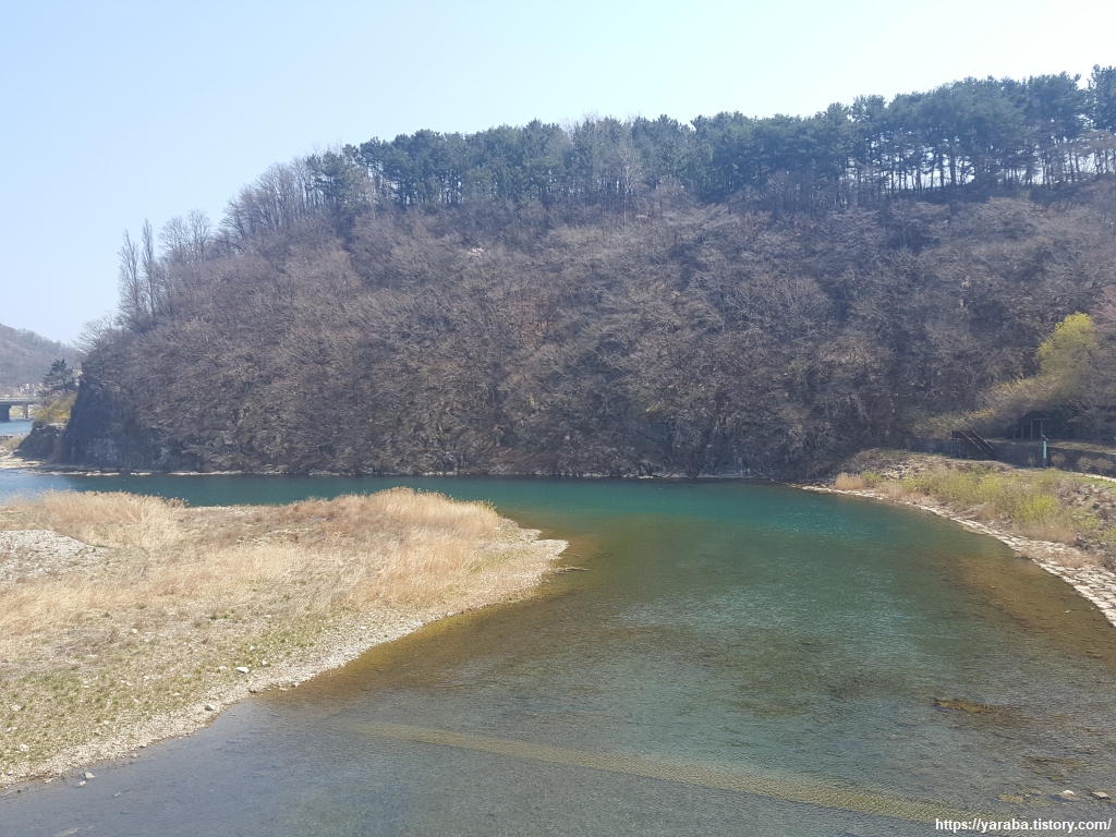 죽서교에서 바라본 남산 방면의 전경. 남산을 잘라서 새로 물길을 만들었을 당시를 생각하며 바라보니 저곳도 많은 사연을 품고 있구나 하는 생각을 하게 된다.