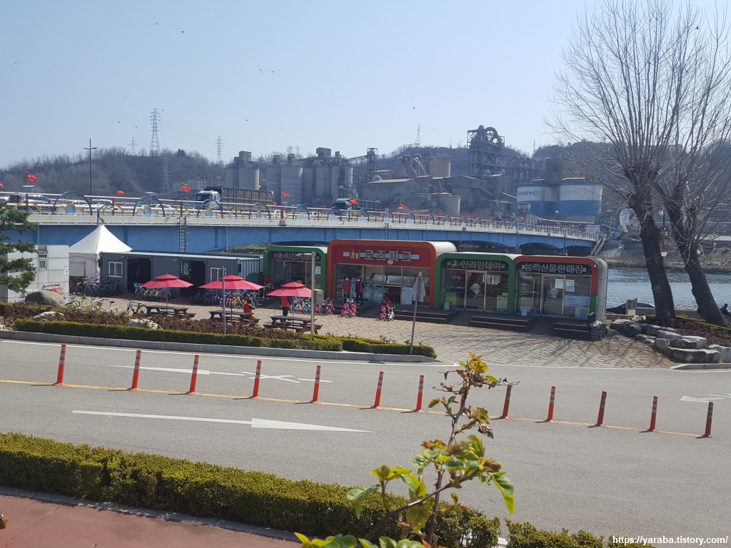 둔치에 있는 장미 공원에서는 젊은이들이 사진 찍기에 여념이 없다. 둔치 곳곳과 언덕에도 온통 장미 천지다. 200 품종의 장미들이 가장 아름답게 꽃을 피우는 5월이 되면 풍경의 주인은 벚꽃에서 장미로 바뀔 것이다. 6월까지는 장미를 누릴 수 있을 것이다.