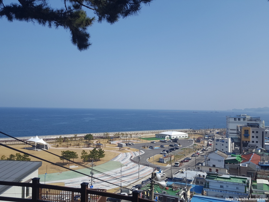 마을 언덕 정상에 오르니 뷰만큼은 훌륭하다. 삼척항에서 시작하여 한창 공사 중인 화력 발전소 공사 현장과 그 뒤로 맹방 해변까지 그림은 정말 좋다.
