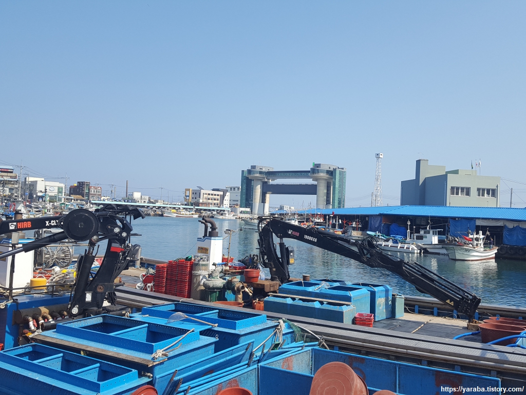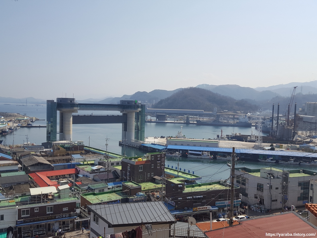 삼척에 들어올 때부터 저 물건은 대체 뭐하는데 쓰는 것인가? 하는 궁금증이 있었다. 개인적인 추측으로는 어항과 화물선이 접안하는 항구가 붙어 있으므로 큰 배들이 들어오면 파도를 칠 테니 수문을 내려서 어민들을 보호하는 것 아닐까? 하는 생각도 있었다. 그렇지만 생각은 그럴듯했지만, 실상은 일본에서 넘어오는 쓰나미를 막기 위한 지진 해일 방지 수문이었다. 일본 서북부에서 지진 해일이 발생하면 가장 큰 타격을 받는 것이 삼척항이어서 2021년 설치하게 되었다고 한다. 3.5미터의 파도를 막을 수 있다고 한다. 평상시에는 수문이 올라가 있다가 쓰나미 경보가 발령되면 수문을 내린다고 한다. 일본에서 지진 해일이 발생하면 삼척항까지 2시간이 걸리고 수문을 내리는 시간은 30분이 걸린다고 한다. 아파트 15층 높이로 국내는 최초, 아시아 최대 크기라 한다.